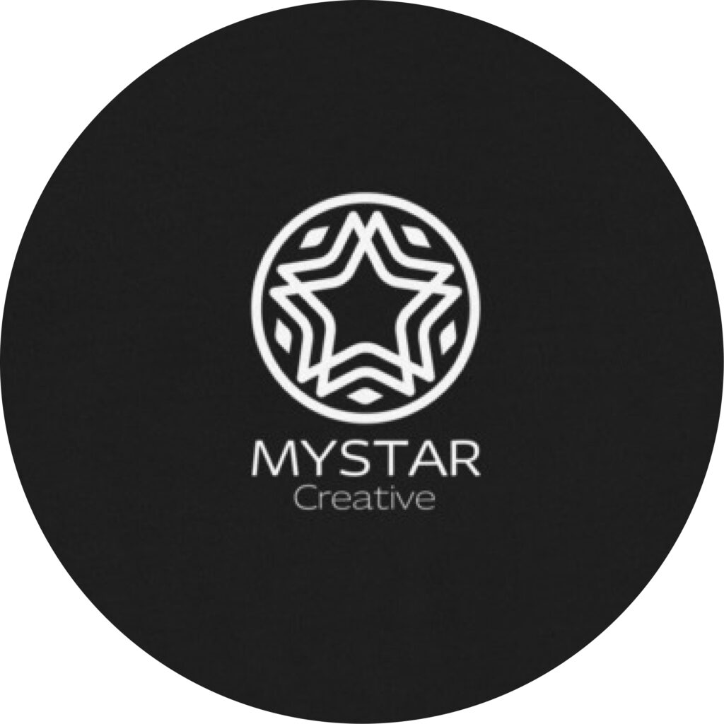 MYSTAR Creativeのロゴ。波紋をモチーフにした金色の星型デザイン。