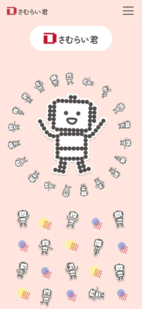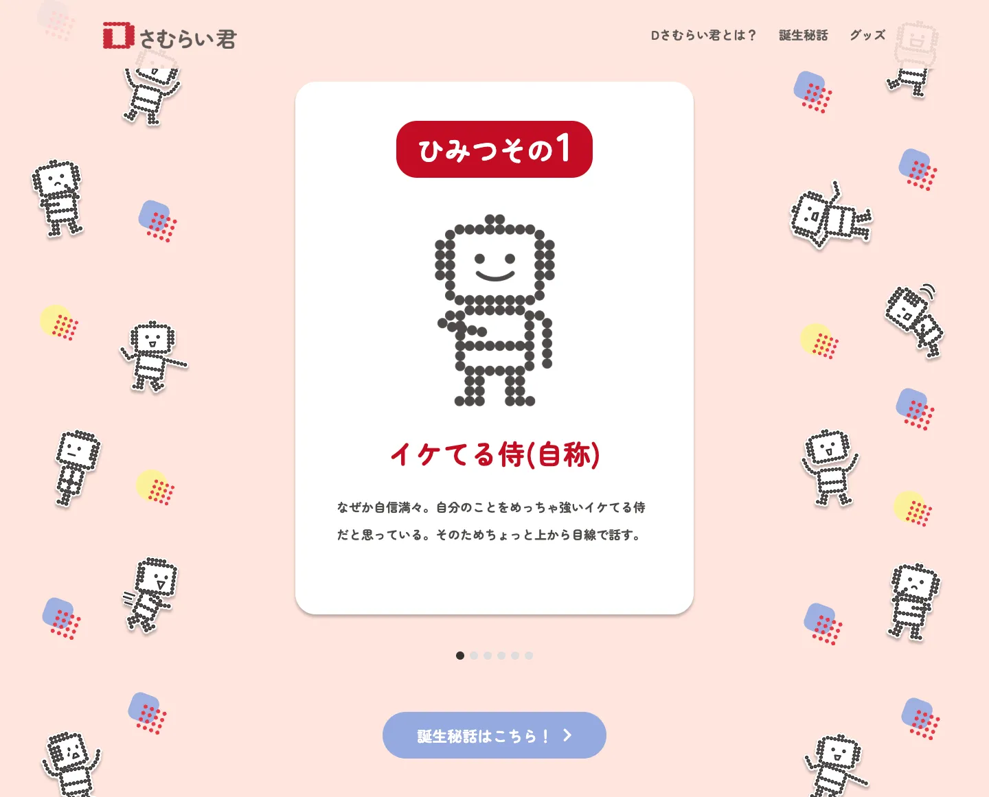 - コンテンツだけではなく、ファーストビューやあしらいに色々なDさむらい君を配置して、キャラクターの可愛さをしっかり伝えられるように工夫しました。