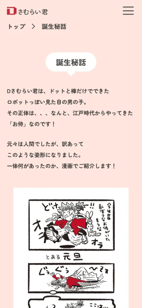 - Dさむらい君の魅力を伝えられるサイトにしたい。