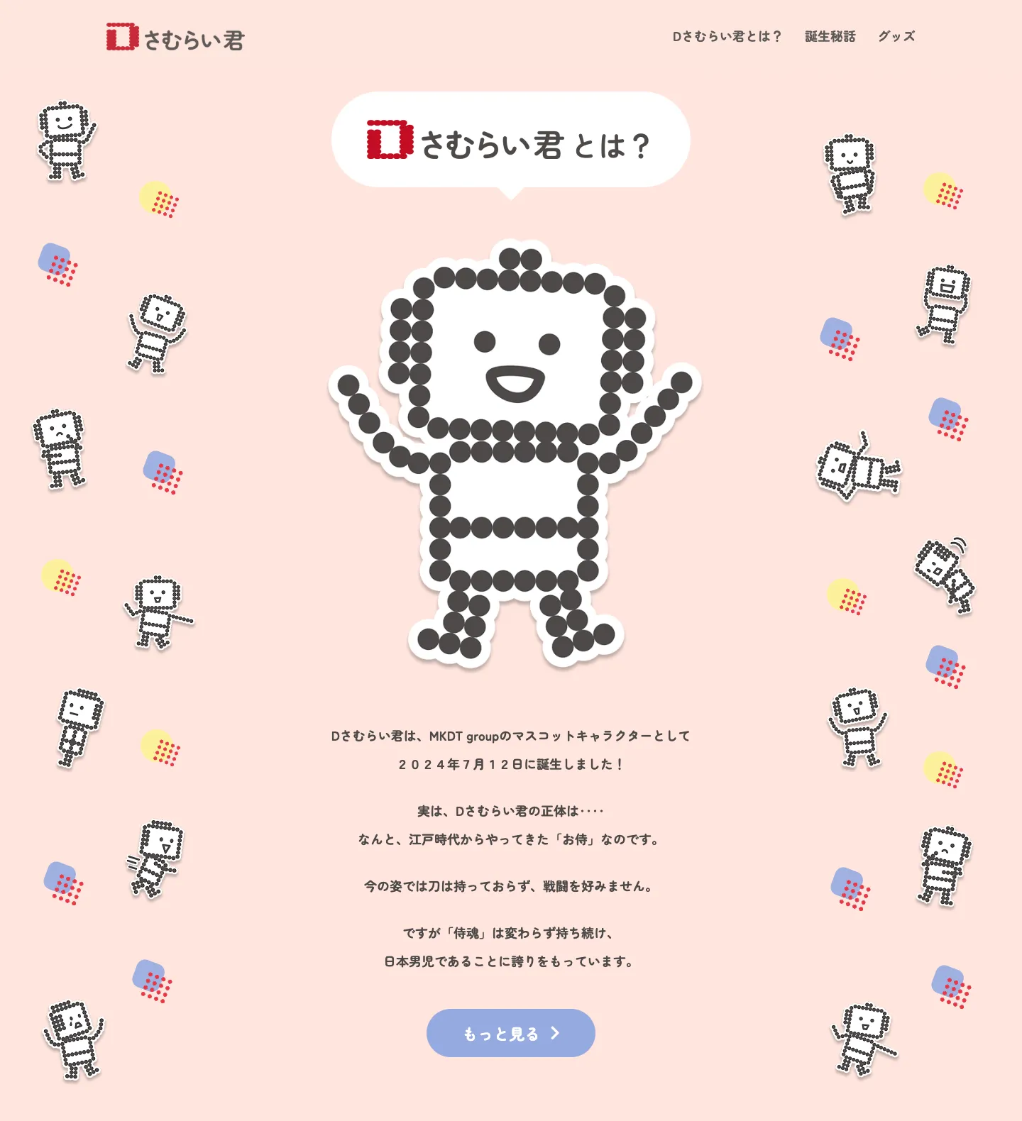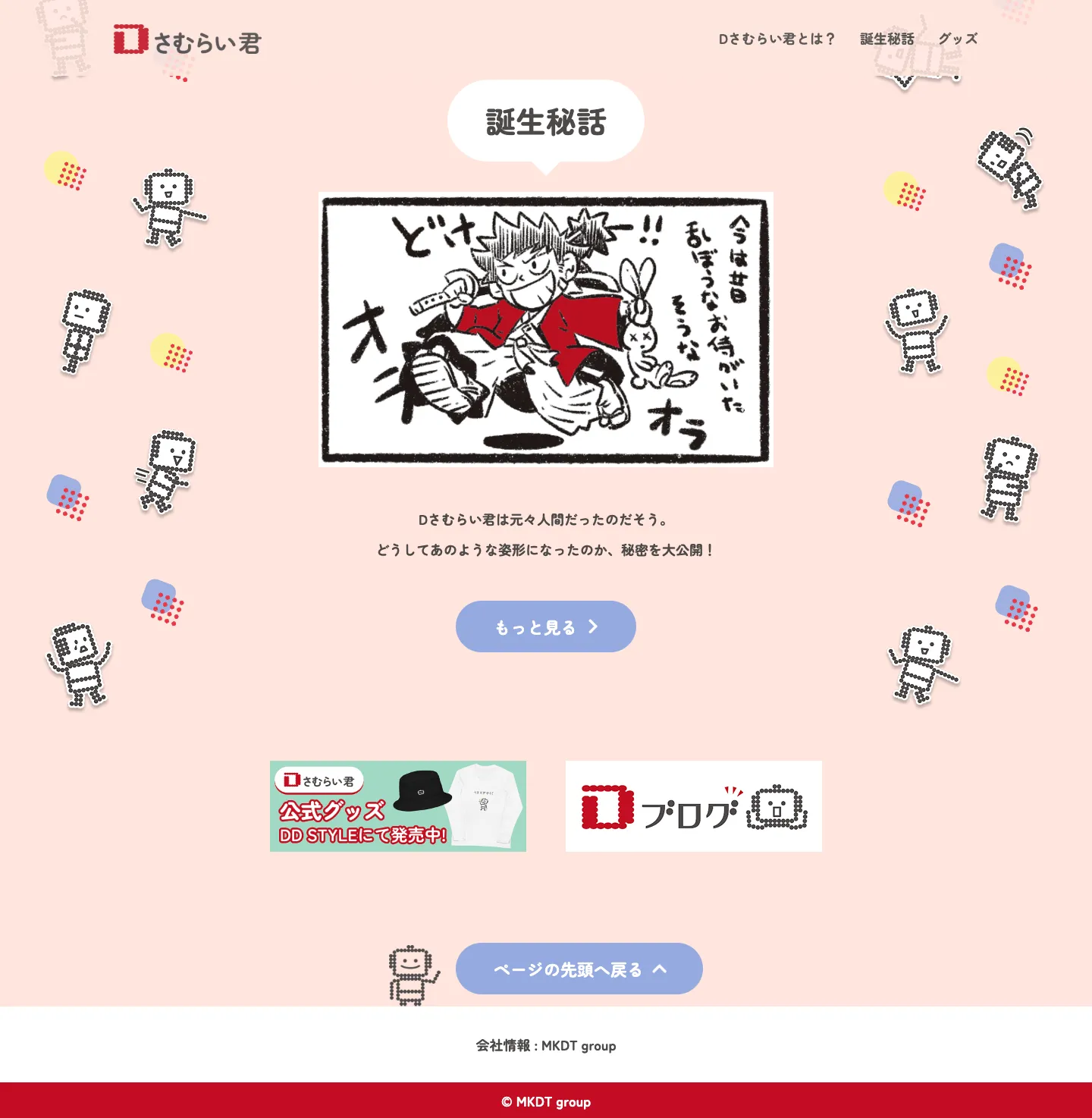 MKDTgroupの公式キャラクター『Dさむらい君』のことを知ることができるキャラクターサイト。